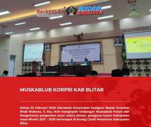 MUSKABLUB KORPRI KAB BLITAR Muhammad Aris February 3, 2026 Berita, Berita Photo, Galeri, Pengumuman Comments Off on MUSKABLUB KORPRI KAB BLITAR 56 Views Related Articles PEMBEKALAN PERSIAPAN REKRUTMEN PERANGKAT DESA GOGODESO 21 hours ago PENGAJIAN RUTIN RABU PAHING PAC MUSLIMAT NU 1 day ago Pendampingan Penyaluran Bantuan Pangan di Desa Jatinom 2 weeks ago Share Facebook Twitter Stumbleupon LinkedIn Pinterest
