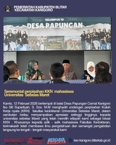 Seremonial Perpisahan KKN mahasiswa Universitas Sebelas Maret Muhammad Aris February 12, 2026 Uncategorized Comments Off on Seremonial Perpisahan KKN mahasiswa Universitas Sebelas Maret 41 Views Related Articles Pengukuhan Karang Werda Kecamatan Kanigoro Masa Bhakti 2024 – 2029 February 12, 2026 FORUM KOPNSULTASI PUBLIK RANCANGAN AWAL RKPD KABUPATEN BLITAR TAHUN 2027 February 9, 2026 DPA Kecamatan Kanigoro Tahun 2025 July 18, 2025 Share Facebook Twitter Stumbleupon LinkedIn Pinterest